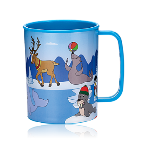 Cană albastră din plastic, imprimată cu animale polare. Aprobare CE. 0 *