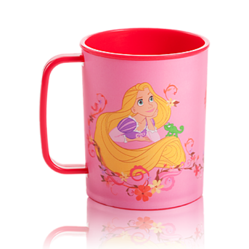 Cană roz, cu portretul lui Rapunzel, personajul principal din filmul de animaţie "Tangled", de la Disney. Vârsta 3 ani+. 0 *