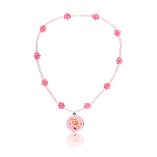 Colier pe suport elastic, cu mărgele sclipitoare şi flori, decorat cu imaginea minunatei Rapunzel. Materiale: aliaj de zinc, acril. Aprobat CE3+. 0 *
