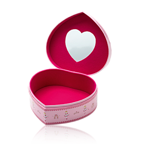 Cutie în formă de inimioară pentru bijuterii, din poliester şi decorată drăgălaş cu hârtie laminată imprimată. Hârtia folosită este certificată FSC™. Aprobare CE. 0 *