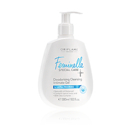 Gel pentru igiena intimă, cu efect dezodorizant. Conţine complexul Deo, ce oferă o senzaţie incredibilă de prospeţime, având în acelaşi timp acţiune eficientă de prevenire a mirosurilor neplăcute cauzate de bacterii. Limitează proliferarea bacteriilor dăunătoare. Hidratează şi conferă o senzaţie de prospeţime. 300 ml
